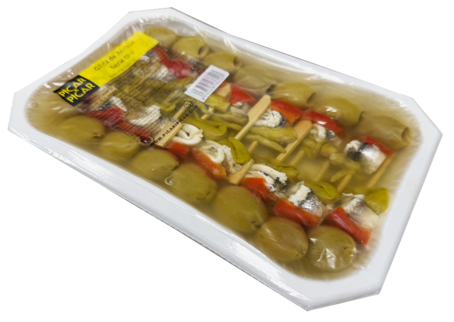 PICAR&PICAR una deliciosa Gilda de boquerón del cantábrico, piparra, pimiento y aceituna gordal. En formatos de 5, 15 y 50 unidades.