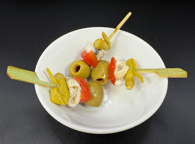GILDA CON BOQUERÓN, PIPARRA, PIMIENTO Y ACEITUNA GORDAL